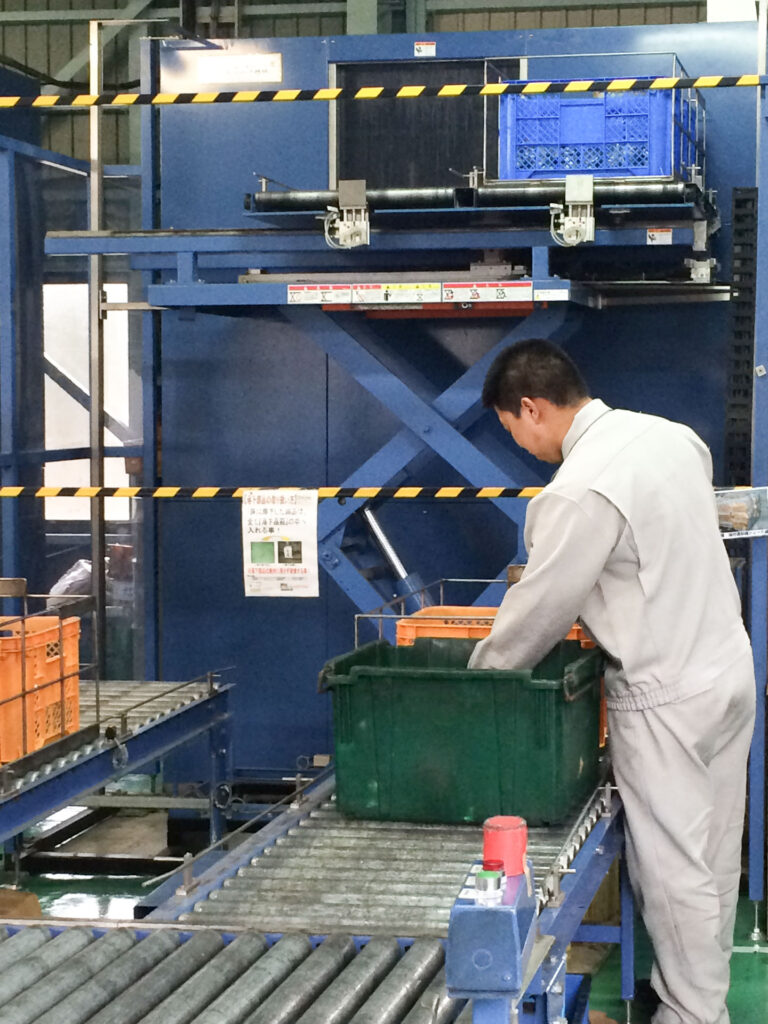 コンテナ等での荷姿変更なしによる洗浄も可能です(低コスト洗浄)